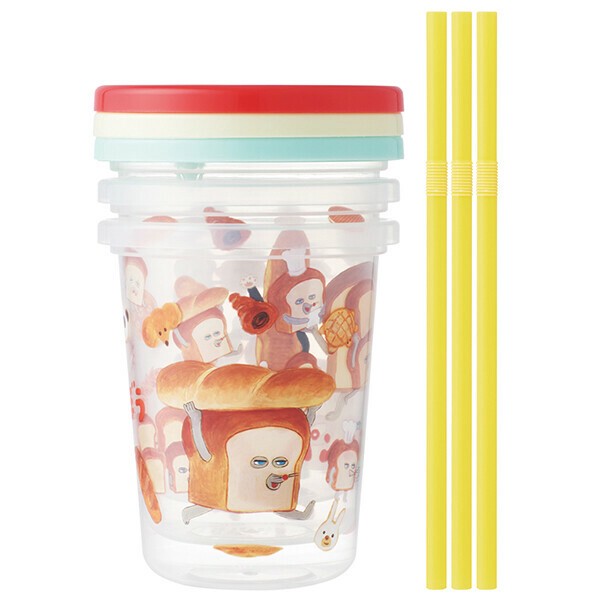 日本製 Skater 麵包小偷吸管杯 3入一組 | 兒童水杯 卡通吸管水杯 學習杯 野餐