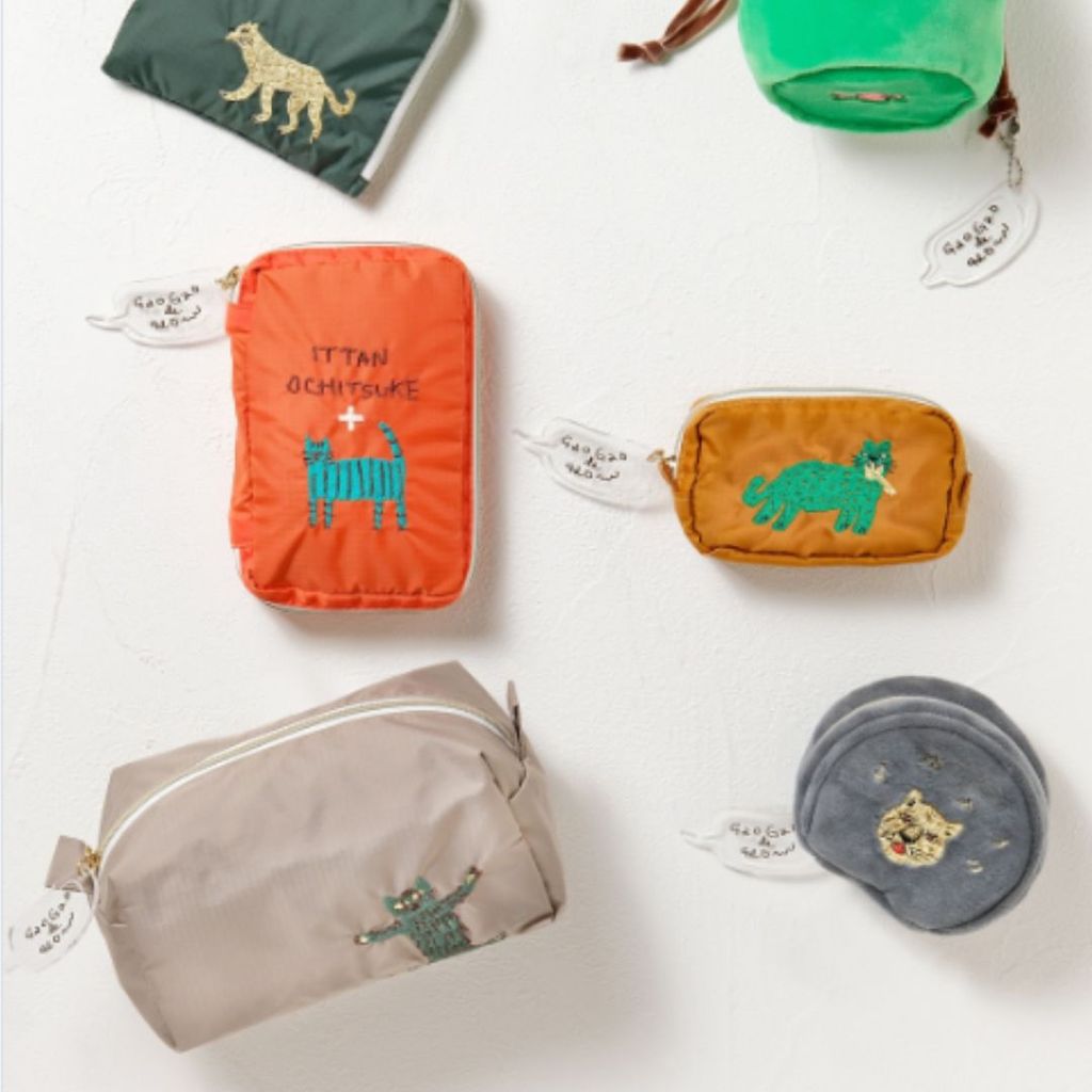日本 CDF 趣味動物刺繡首飾盒/收納包|配件包 鑰匙包 戒指盒 化妝袋 BISQUE