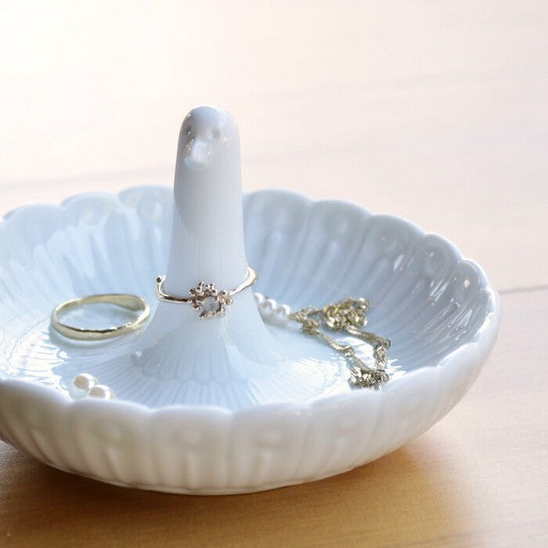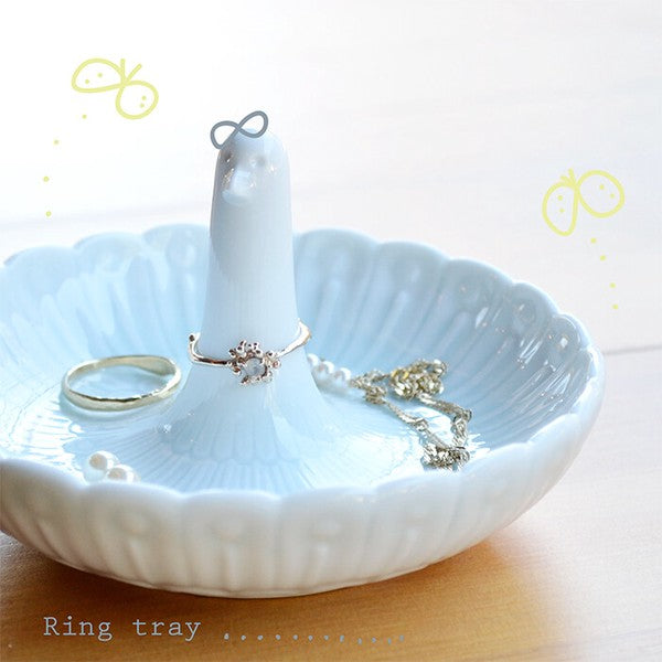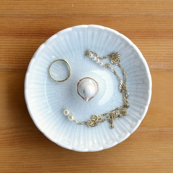 日本製 白山陶器 淺藍羽紋戒指盤|飾品盤 首飾收納 展示小物盤 名片托盤