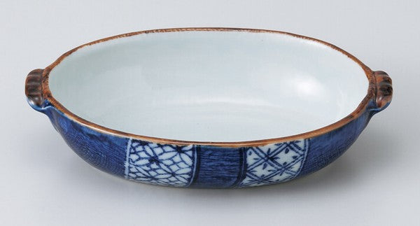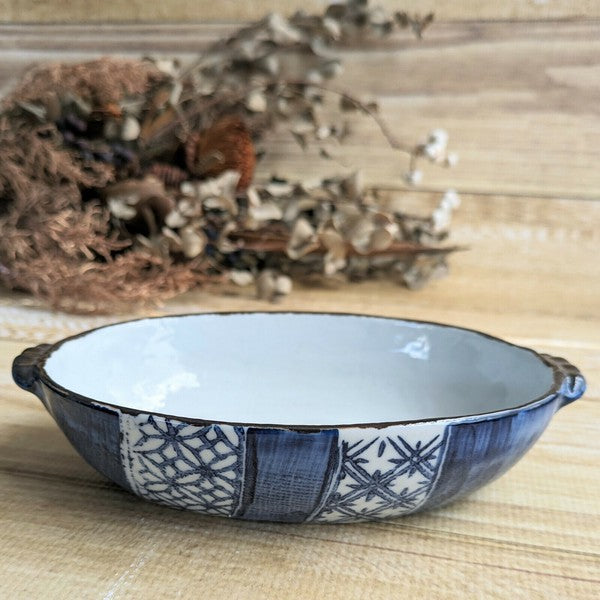 日本製 美濃燒 藍祥瑞陶瓷雙耳烤盤 | 烤盤 焗烤盤 甜點烤盤 陶瓷烤盤 日本製盤子 橢圓盤 深盤