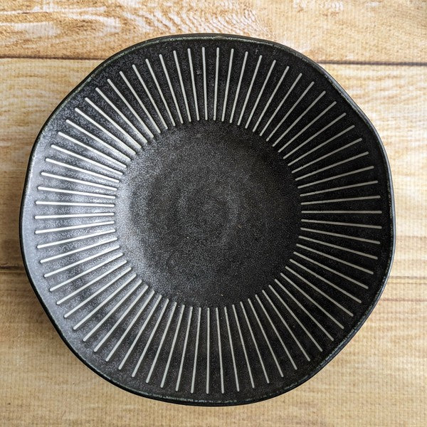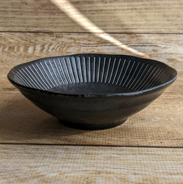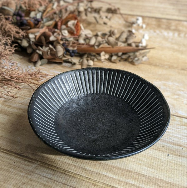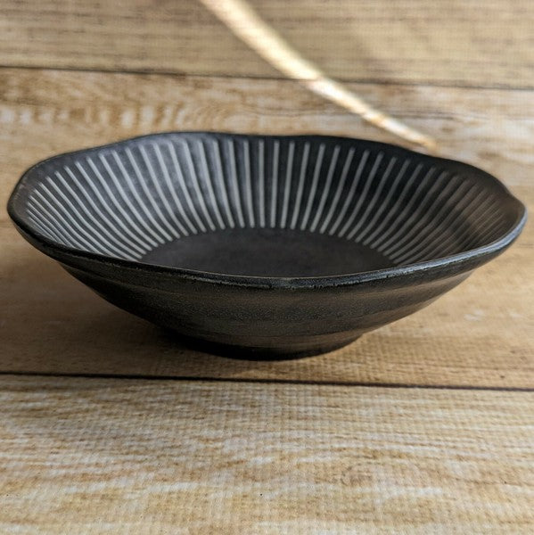 🇯🇵 日本製 美濃燒 黑御影十草線條碗|深碗|湯碗|咖哩碗|小菜碗|黑色啞光質感