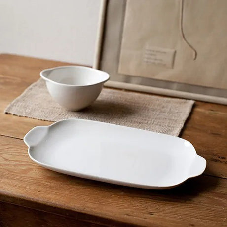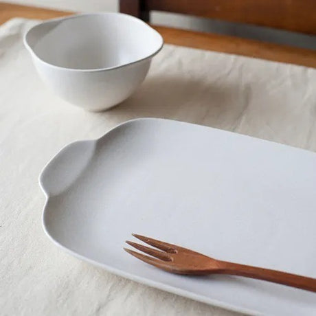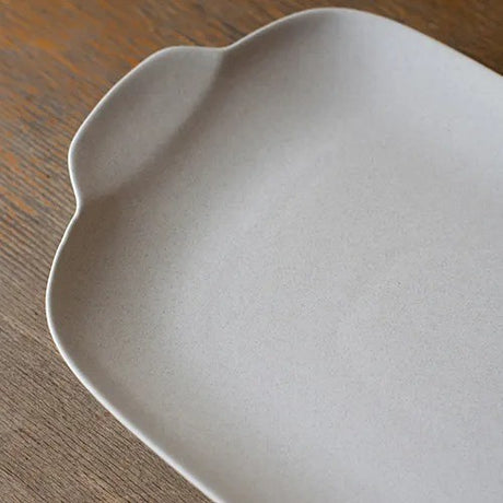 日本製 美濃燒 白結晶豆型陶瓷淺盤 | 不規則盤 菜盤 魚盤 可微波 白結晶釉