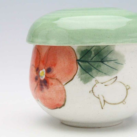 日本製 花花兔手繪陶瓷附蓋碗 | 湯碗 蒸蛋碗 茶碗蒸 飯碗 碗 陶瓷碗 湯盅 湯杯碗 碗盤 家用碗