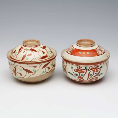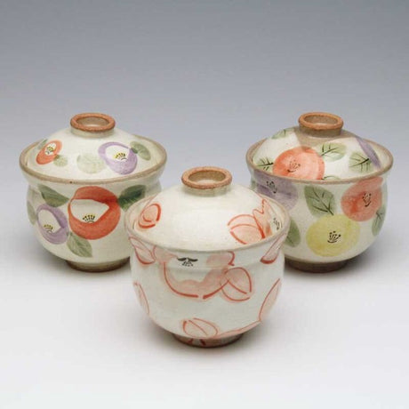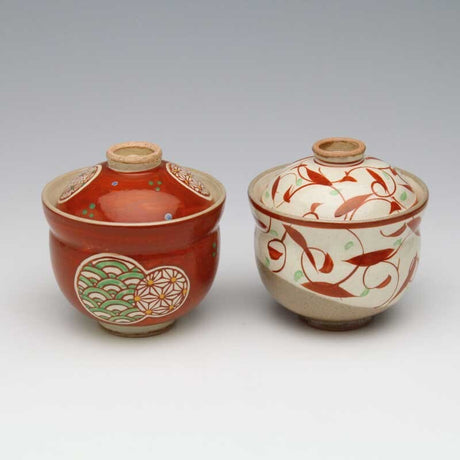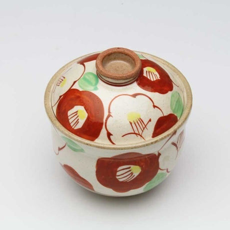 日本製 手繪陶瓷紅色吉祥紋蓋碗 | 蒸蛋碗 甜點碗 茶碗蒸 日本碗 帶蓋碗 湯盅 湯碗 燕窩碗 新年碗盤