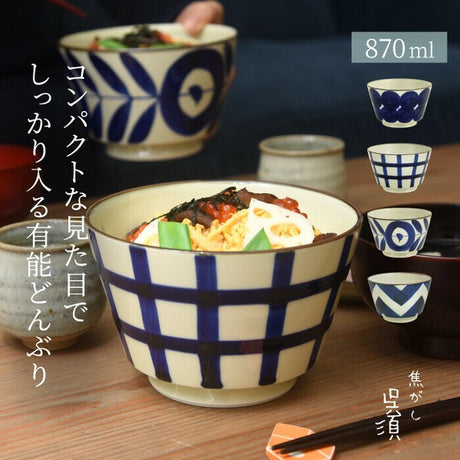 日本製 natural69 波佐見燒 焦吳須丼碗 | 陶瓷碗 大碗 深碗 丼飯碗 烏龍麵碗 碗公 高台碗