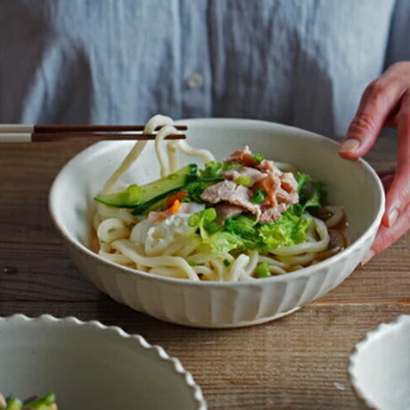 日本製 美濃燒 Albee 線條十草多用碗 13cm | 沙拉碗 深碗 麥片碗 優格碗 甜點碗 日本製碗