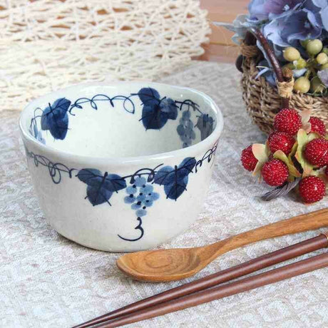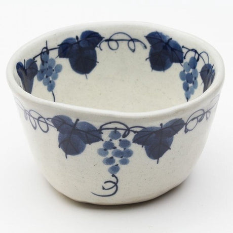 日本製 瀨戶燒 粉引藍白葡萄紋茶杯 陶瓷麵碗 | 湯碗 片口杯 茶杯 茶碗 豬口杯 藍白葡萄紋 日式餐具