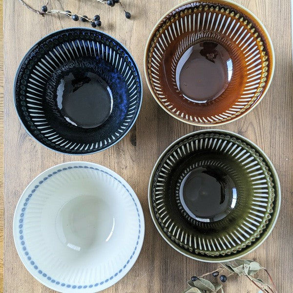 日本製 美濃燒 浮雕十草拉麵碗 | 湯碗 大碗公 陶瓷拉麵碗 寬口碗 丼飯碗 陶瓷碗公 泡麵碗