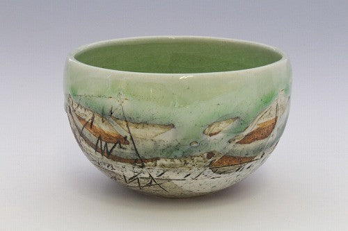 ✨現貨日本製 手工二色線刻造型碗|10.8cm 美濃燒