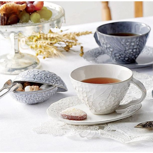 日本製 春櫻拿鐵杯盤 | 古典繡球花 咖啡盤 拿鐵杯 咖啡杯 下午茶 蛋糕盤 小花浮雕 杯子 拍照道具