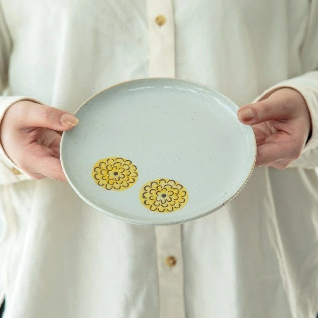 盤面上特意放置在邊緣的雙大麗花圖案,讓你擺盤時能自然利用花型做出更精緻的效果。 午後時光,放上一塊甜點、倒上熱咖啡或奶茶,打造屬於自己的悠閒下午茶儀式感。