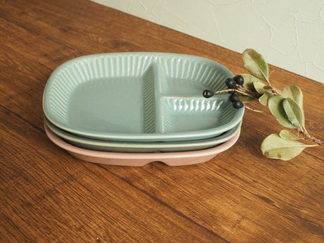 日本製 美濃燒 莫蘭迪釉色 陶瓷分隔餐盤 | 三格盤 211餐盤 分隔盤 陶瓷分隔盤 減脂餐盤 午餐盤
