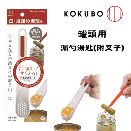 日本製 小久保 玉米罐頭漏勺湯匙 | 漏勺 挖勺 罐頭湯匙 濾勺 附叉子 撈勺 刮勺 罐頭勺 塑膠湯匙