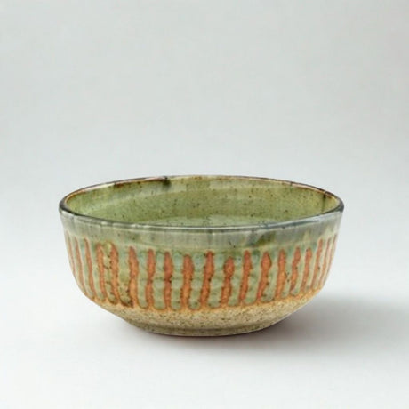 日本製 美濃燒 撥水十草 陶瓷線條8吋碗公 | 麵缽 拉麵碗 陶瓷碗 大碗公 大湯碗 沙拉碗 大份量料理