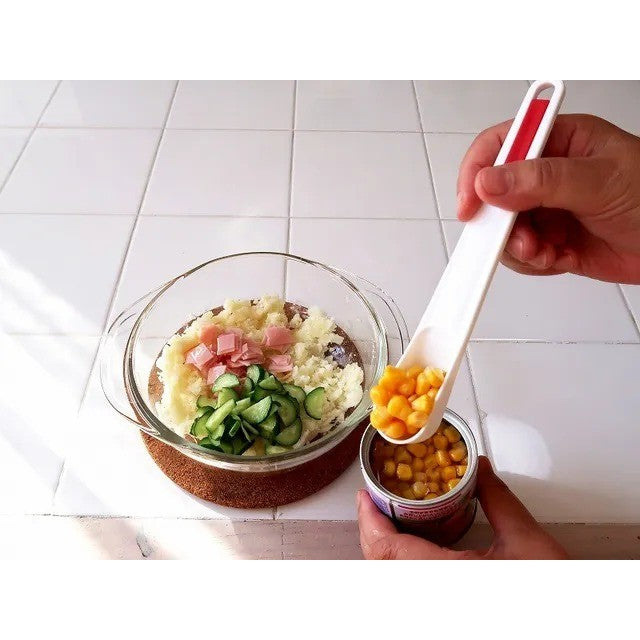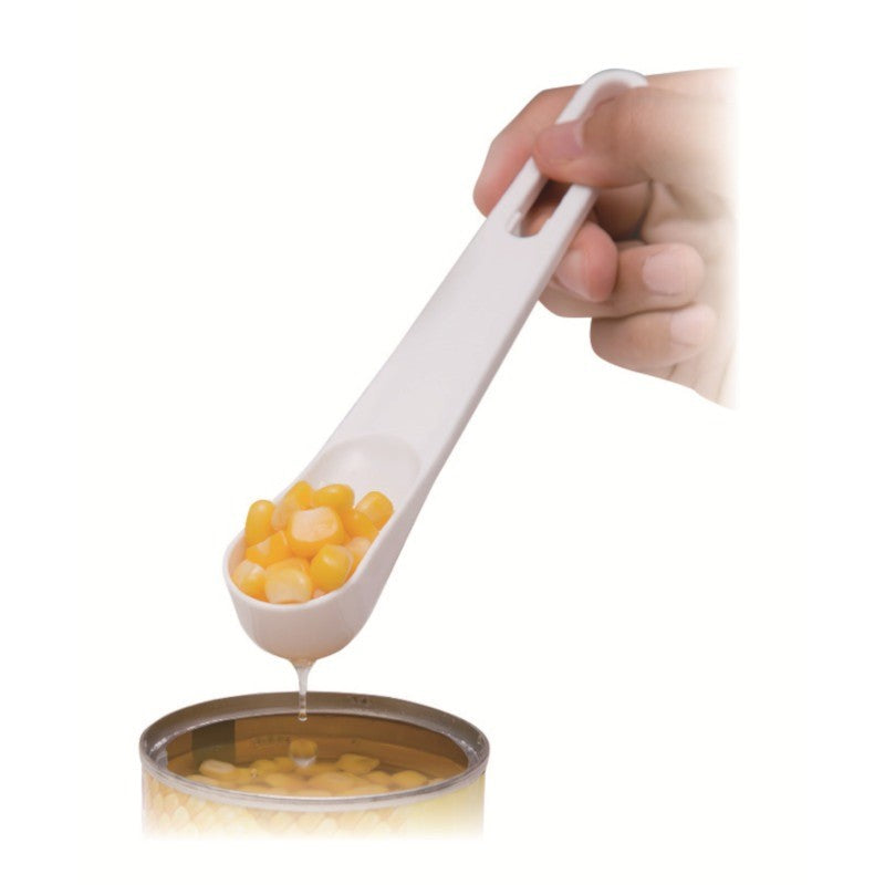 日本製 小久保 玉米罐頭漏勺湯匙 | 漏勺 挖勺 罐頭湯匙 濾勺 附叉子 撈勺 刮勺 🥄 一匙兩用・聰明設計 專為玉米、豆類等罐頭食材設計的日本製漏勺湯匙, 前端設有濾孔可濾乾湯汁,側邊附小叉尖可輕鬆取出內容物, 讓開罐、取料、盛裝一氣呵成!