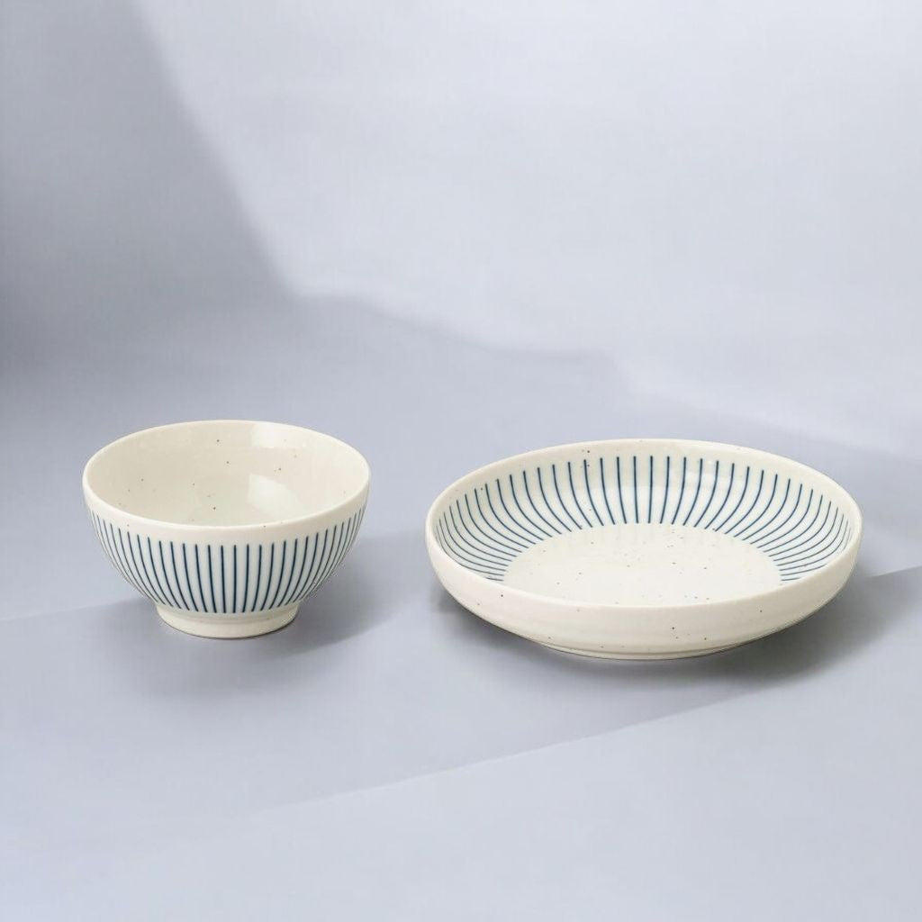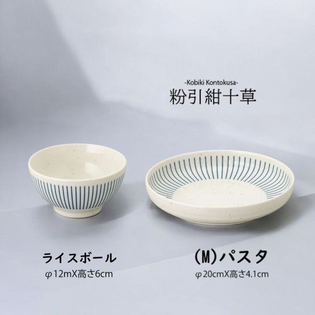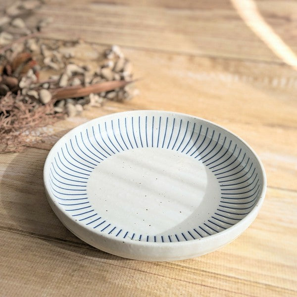 日本製 美濃燒 粉引紺十草 陶瓷碗盤 | 線條餐盤 日本餐盤 圓盤 飯碗 小碗 陶瓷盤 盤子 日本碗