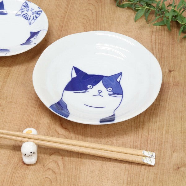 日本製 美濃燒 Shichita 陶瓷貓咪圓盤 16cm | 點心盤 水果盤 沙拉盤 甜點盤 分菜盤