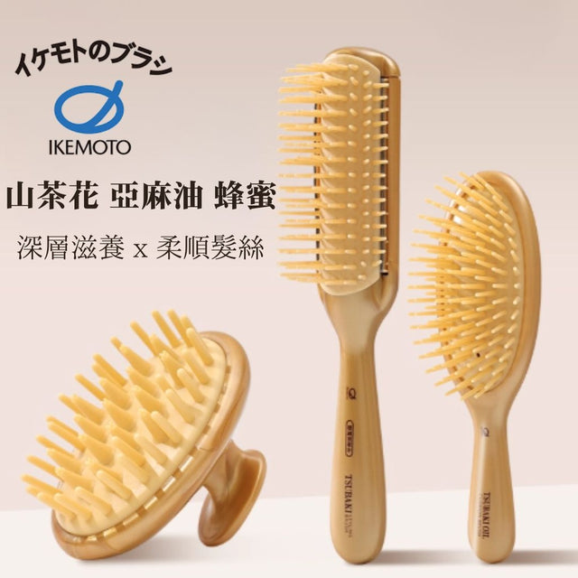 日本製 IKEMOTO 池本 山茶花 亞麻油 洗髮刷 除靜電梳子 | 樁油 護髮梳 美髮梳 頭皮按摩梳