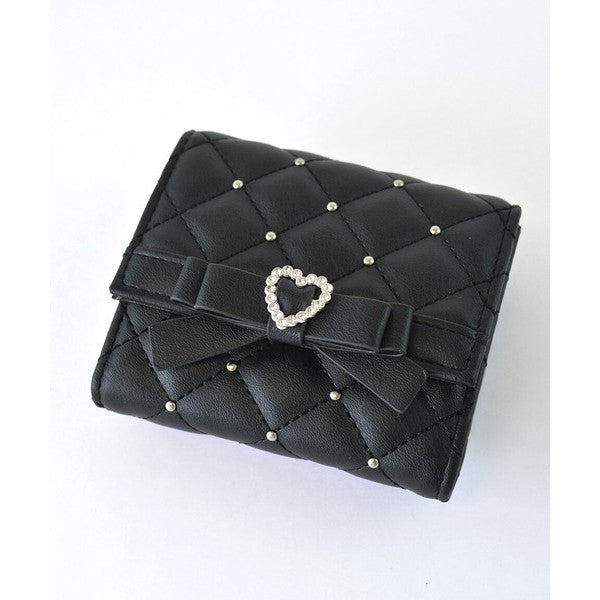 現貨 日本 SecretDoor 愛心鑽石釦菱格紋短夾|珍珠鉚釘・超薄三折錢包・女生短夾