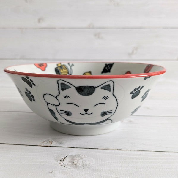 ✨ 日本製 美濃燒 招財貓陶瓷拉麵碗 | 大碗|拉麵碗|碗公|湯碗|可愛貓咪碗|多用碗|丼飯碗