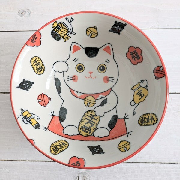 來自日本百年窯口的手感陶瓷,大小剛好能裝下一碗暖呼呼的拉麵,也可以用來盛丼飯、湯品、沙拉,甚至當作家庭聚餐的大碗都很合適。 這款 招財貓系列 的特色,就是內外都印上了可愛的三花貓圖案。 抬起碗準備開吃時,會看到碗底探出頭的小貓咪;放在桌上時,外側又有另一隻開心迎接你的招財貓。 每一次用餐,都像被「福氣」小小包圍著。 在日本與海外市場都非常受歡迎,因為它不只實用,也充滿濃濃的日本文化風情。 不管自用或送禮都很適合 ——送給朋友、家人、新居落成、婚禮禮物,都能帶來滿滿好意頭。