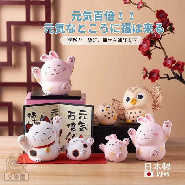 日本製 萬古燒 元氣招財貓 陶瓷 招財 福兔 吉祥擺件 招福開運 擺飾 玄關 客廳裝飾 送禮
