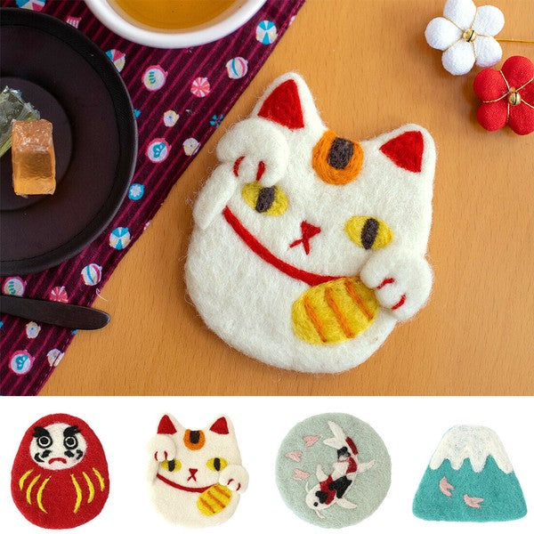 日本進口 尼泊爾手工製 羊毛氈杯墊 | 富士山 柴犬 招財貓 手工 羊毛 隔熱墊 墊子 杯墊